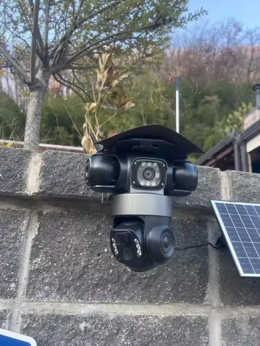 This solar camera is suitable for 360 degree surveillance. Each lens can be rotated independently, and the mobile app allows you to change the viewing angle with a single click. The outer horn is very large. I tried remote barking function. It can scare my dog. All this is for deterrence! I highly recommend it!