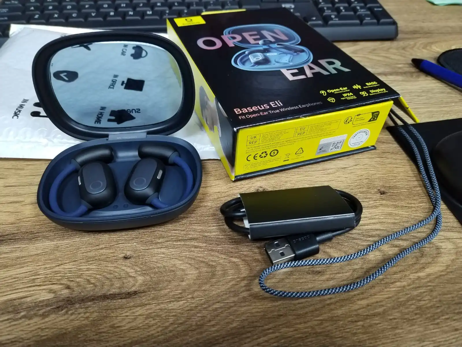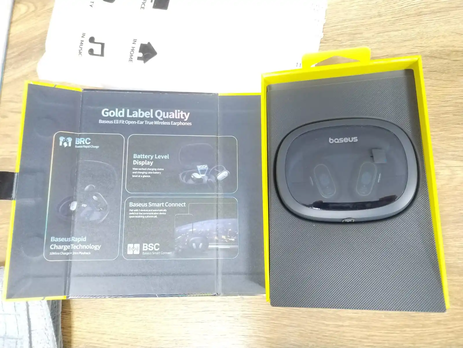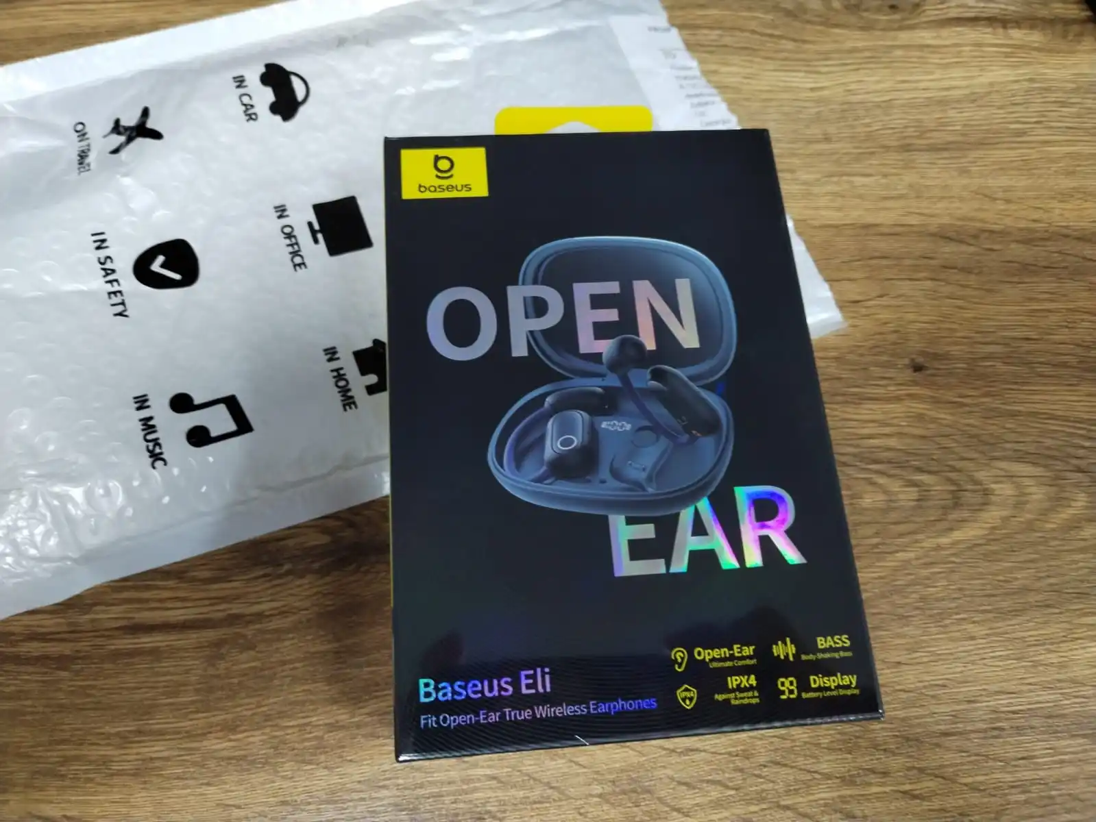 The baseus eli fit headphones have a great open-ear design, which ensures comfort and safety for sports or city use as you can hear your surroundings. The packaging is premium, and i appreciate the clear battery percentage display. Fast charging and ipx4 sweat resistance are excellent bonuses. They have a pleasant sound with prominent bass. A great and well-thought-out product. Thx