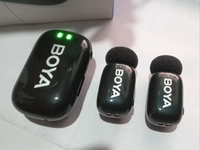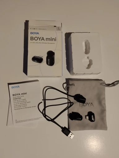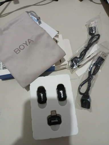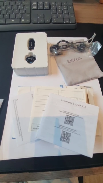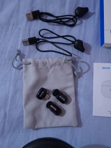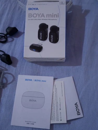 Product - BOYA mini microphone received within the seller's stated delivery time, packaging intact. The included manual is very sparse. I used the QR code which directs to the page with full user manual. I have been using this product for several days. Works very well with Samsung A525G. TX microphones pair with RX receiver in seconds Simultaneous audio recording from two microphones when recording video as well as on the recorder. The sound quality is really very good. Noise reduction is also a good level. "Charging case ""power bank"" how will it behave under irregular usage conditions?" Time will tell. It's hard to infer from the instructions how to properly charge the TX microphones and the charging case. I hope that the battery in the cassette and the TX batteries of the microphones will last for a long period. The product quality for the price is very good for me.