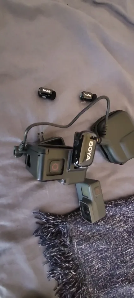 Package arrived on time and undamaged. A great mic system that can plug straight into my gopro camera external mic adaptor and give twin wireless mic recording. Fixes to the camera for ease of use. The system gives great flexibility for improved audio sound on action cameras with 3.5 jack input or type c connections as the receiver is self powered and does not need power from the camera. Great product