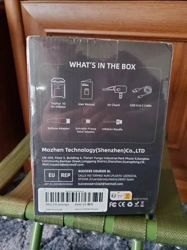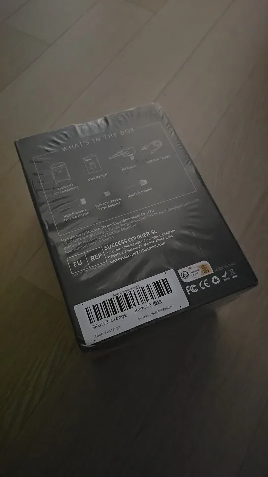 Charging status 100% / Product appearance and condition are fine except for the crushed box / Tire inflation in 10 minutes